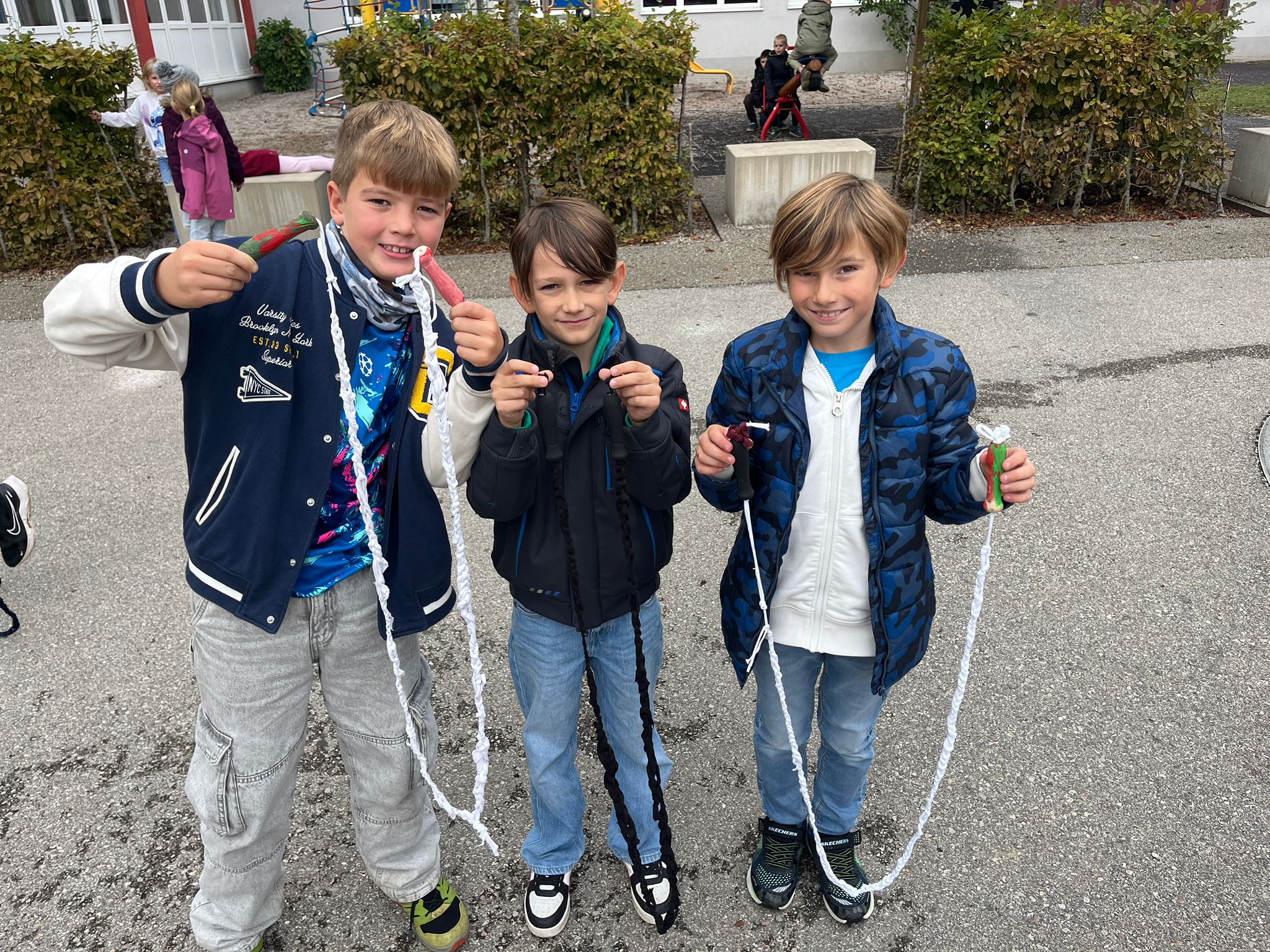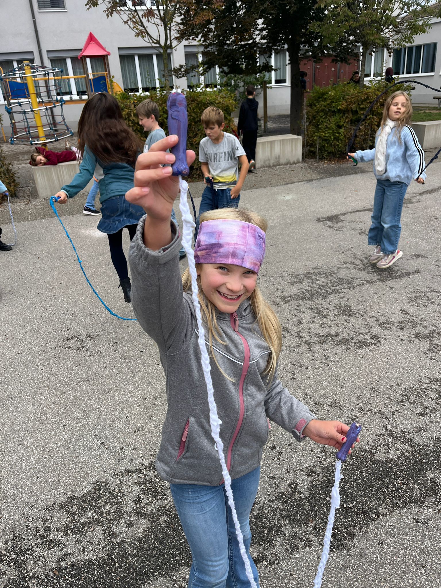 Das Projekt verband handwerkliches Geschick, Umweltbewusstsein und eine Menge Spaß. Am Ende konnten alle stolz ihre eigenen, farbenfrohen Sprungseile ausprobieren und natürlich gleich auf dem Pausenhof testen!